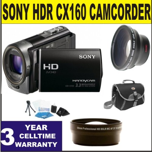 Sony HDR CX160 Camcorder w/ .45x Wide Angle Lens + 2x Telephoto Lens + 3 Year Celltime Warranty .