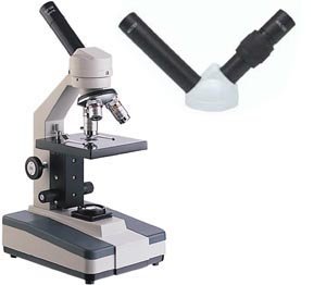 ST-600 E-100 Microscope (Dual 45°)(Cordless) Eyepieces - 10X WF Pointer Focus - Separate Coarse & Fine Objectives - 4X, 10X, 40XR, 100XR Oil Magnification - 40X, 100X, 400X, 1000X Head - Dual 45° Stage - 1.25 N.A. abbe Condenser Iris Diaphragm Illumination - LED w/ Power Cord Sturdy, well-balanced, aluminum die casted and rubber-footed stand. Locked in wide angle WF 10X eyepieces with built-in calibrated pointer, provides actual measurements of specimens rather than relative sizes. " Standard - 4½ x 4¾"(115 X 120mm) plain stage with locked on stage clips and 5 hole disc diaphragm. " Built in illumination system in base with off-on switch and three-wire grounded power. " Comes complete with dust cover and instructions. " Size 14 ½ inches high " Warranty 5 Years