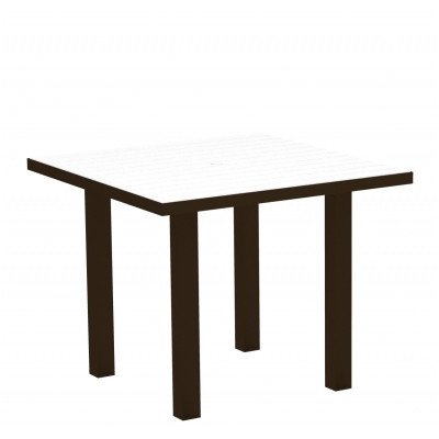 Euro Square Dining Table Finish: Textured White Aluminum Frame / Mahogany?AT36-13MA Finish: Textured White Aluminum Frame / Mahogany Features: -Dining table.-Furniture grade Polywood material.-Made to withstand a range of climates including hot sun, cold winters, and salty coastal air.-Stainless steel hardware.-Slats made from recycled plastic and 100pct recyclable.-Made in the USA. Assembly Instructions: -Assembly required. Dimensions: -Dimensions: 29'' H x 36'' W x 36'' D. Collection: -Euro collection.