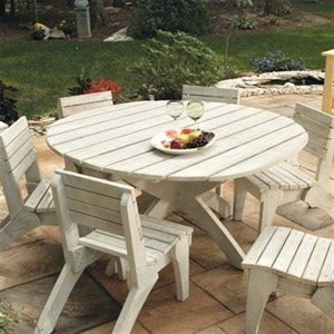 Dining Table 54in Mint Green?UWharrie Dining Table 60in Beautiful Comfort Rustically styled UWharrie chairs are crafted from hand selected pressure treated solid pine lumber, painted and lightly distressed for a beautiful, weathered antique look. They require no additional protection from the elements. Exposure to weather will enhance their rustic appearance, but will not damage them. Weight:128 lbs. Dimensions: 62"W x 32"D x 62"H Please allow up to 3-4 weeks for delivery Color Chart About Uwharrie The Original Uwharrie Chair was created to offer not only all-weather seating, but classically styled, comfortably designed outdoor accents. With their rugged good looks and solid construction, the chairs and their companion pieces provide a balance of aesthetic charm and lifestyle integrity. It is insect and rot resistant, it may be stained or painted (or left natural), and it's milled from a renewable resource: plantation grown southern pine. Uwharrie Chair Company uses heavy, one inch thick premium grade lumber kiln dried after it has been treated. Paints used to coat Uwharrie Chair products are latex enamel.